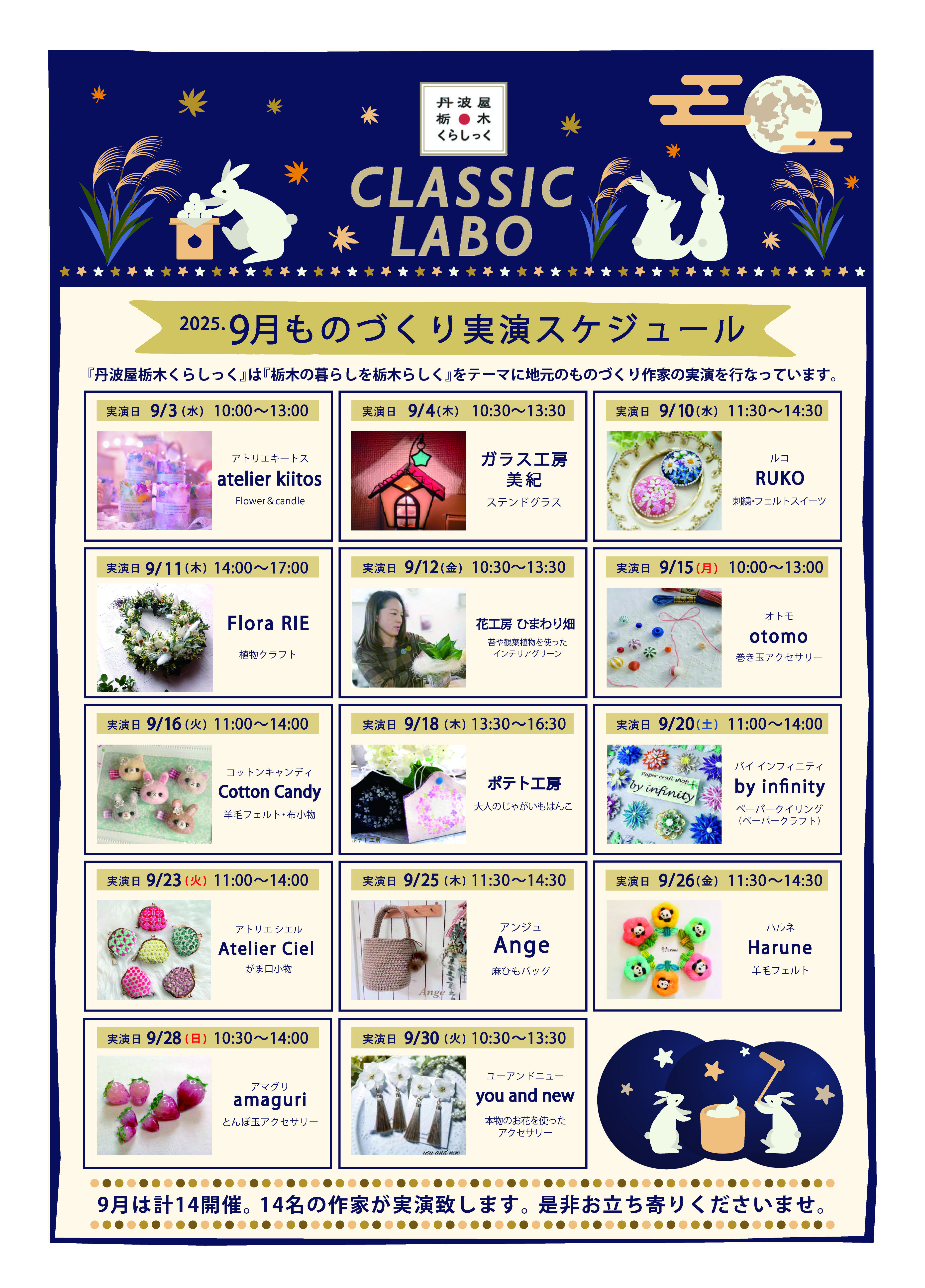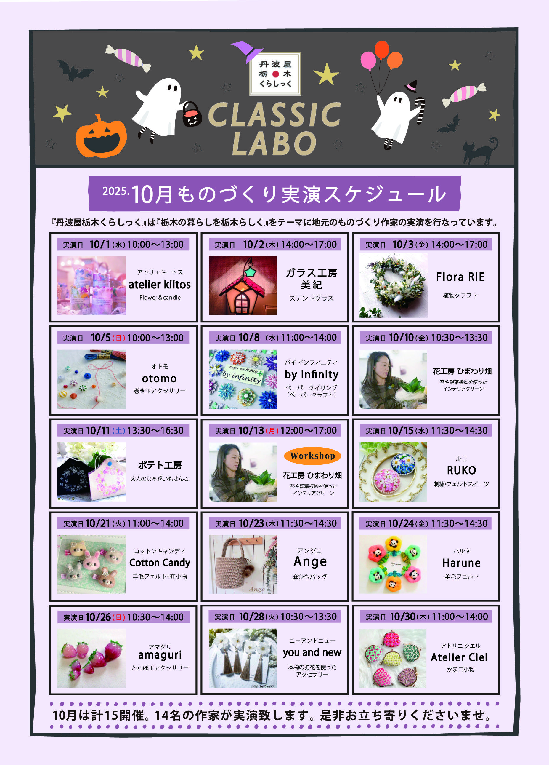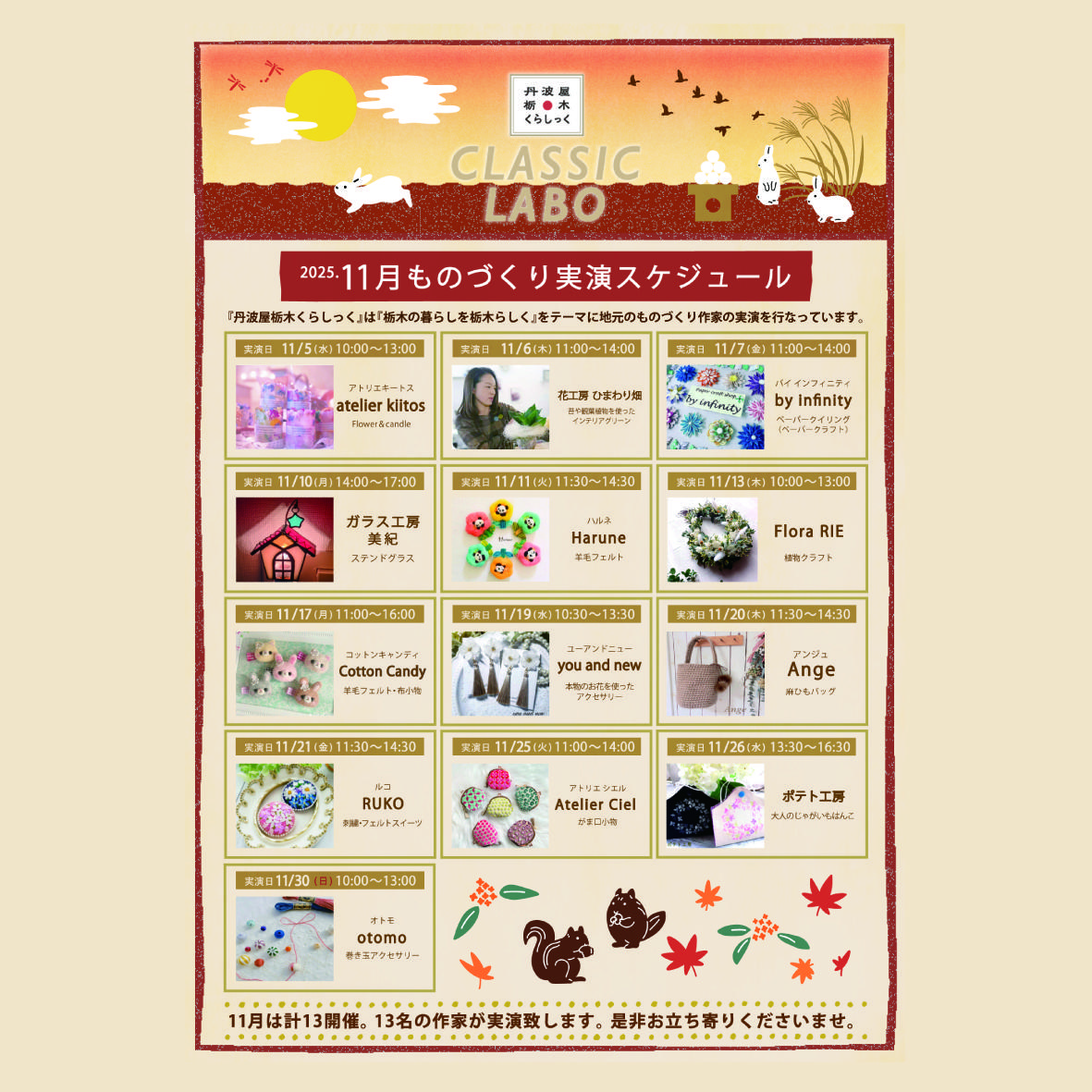 栃木県内で活躍中のハンドメイド作家によるものづくり実演スケジュール。